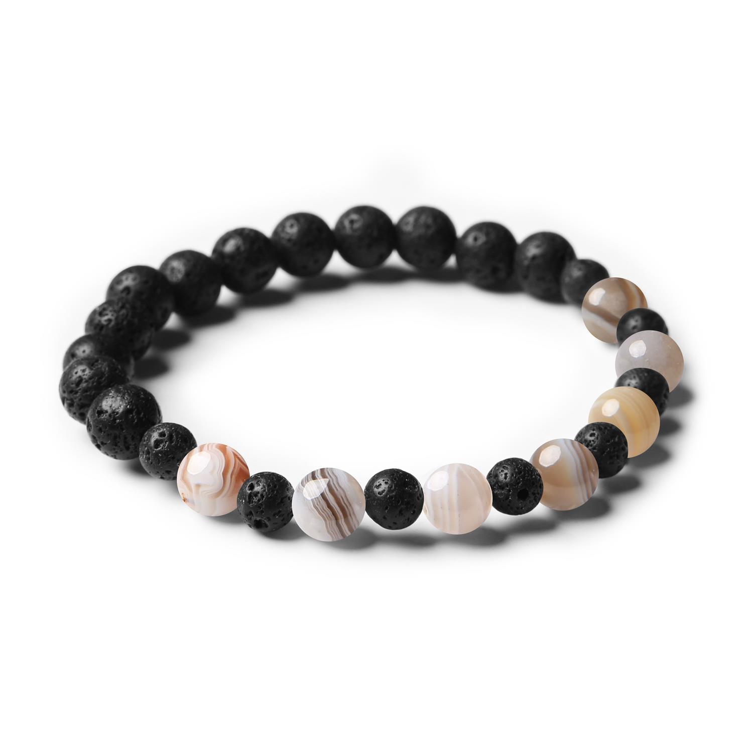 Bransoletka z Kamieni Naturalnych – Agat Botswana, Lawa Wulkaniczna. Kolekcja Mijaha.